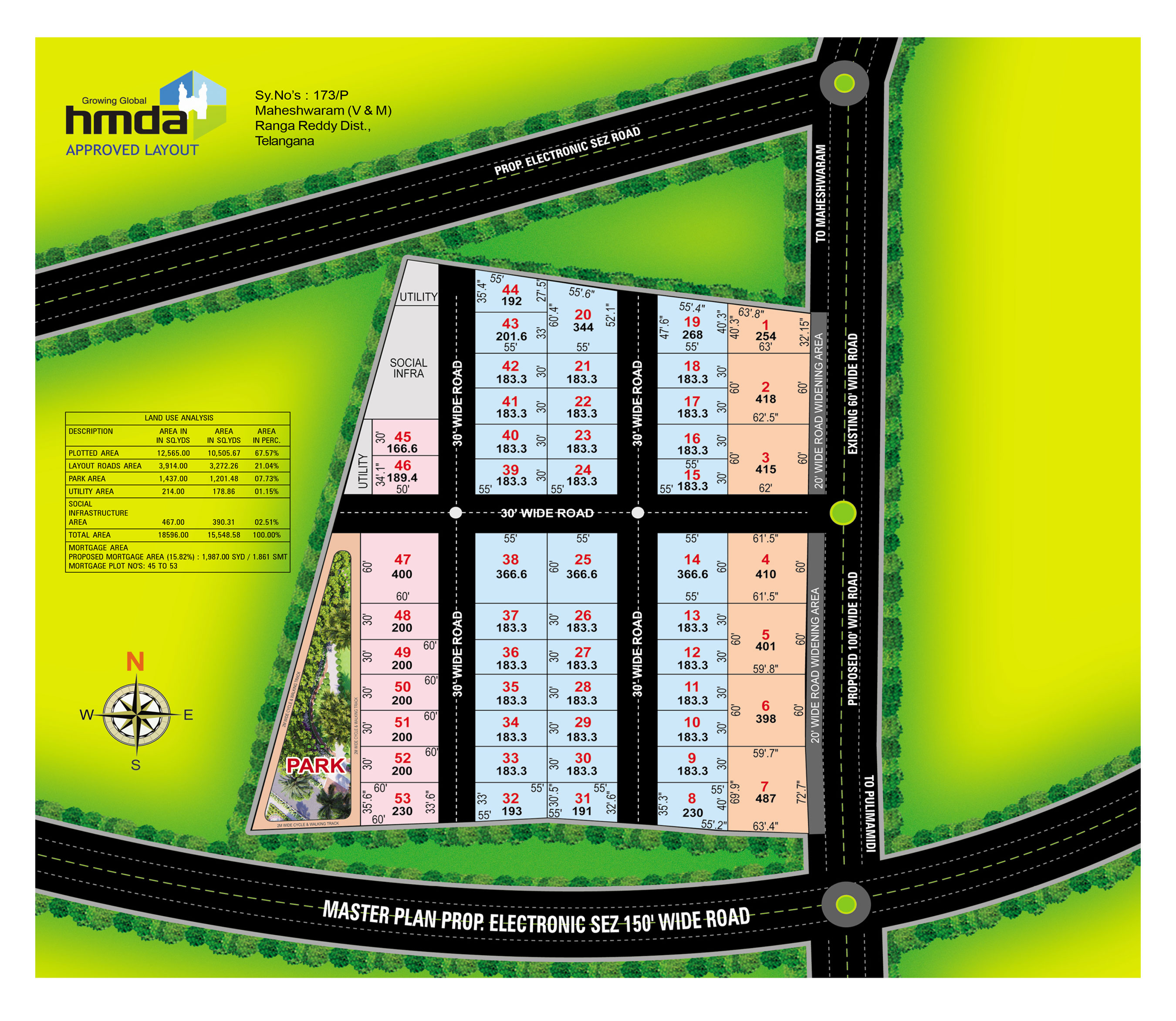 - Master Plan Prop. 150ft Maheshwaram - Electronic City SEZ - Pulimamidi road Facing Project
